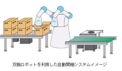 <双腕ロボットを利用した自動開梱システムのイメージ図>
