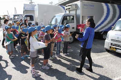 また3月11日に発生した東日本大震災を受けて、物流が担う責任や使命について、実際に現地で復興にあたった同社担当者と電話で結び、当時の話を児童たちに分かりやすく説明した。