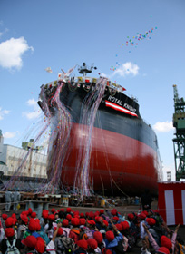 川崎重工業は10月24日、、神戸工場においてパナマのTATEYAMA NAVIERA S.A.(タテヤマ ナビエラ エス エー)向け58型ばら積運搬船「ROYAL KNIGHT(ロイヤル ナイト)」の進水式を行った。