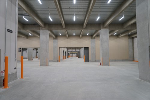 4階建てで、1階から2階にスロープを設け、トラックバースがそれぞれに20台、3階・4階へのアクセスには、荷物用エレベータ6基と垂直搬送機2基が可動する。