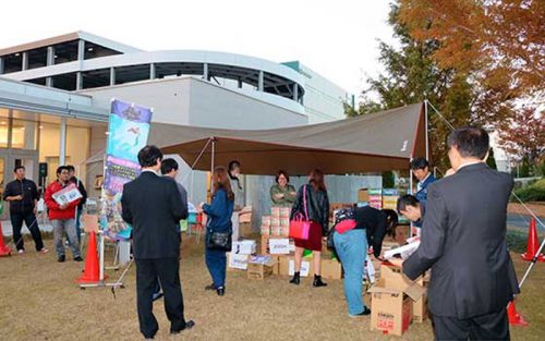 共用棟外にある芝生スペースでは、入居企業に協力による、試食イベントやサービス紹介、日用品特価販売などを行った。