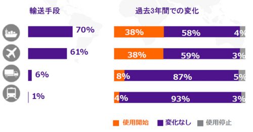 調査対象企業のうち、25%が今後1年間で越境ECによる収入増加が期待できると見込んでいる。必要なサービスとして具体的に挙げられたのは「より早い輸送サービス」(39%)や「現地関税等への専門性」(28%)、「自由度の高い輸送サービスの選択肢」(25%)などであり、全体の84%で物流が輸出ビジネスで重要な役割を担っていると回答した。