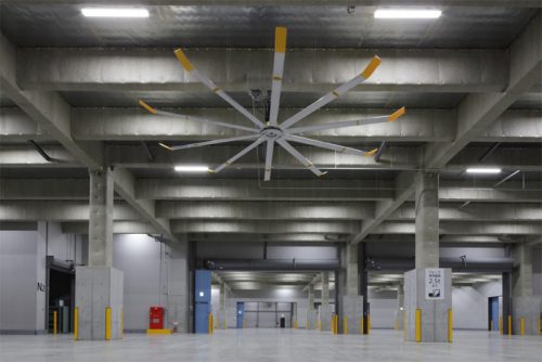 セミナーのテーマにもなっている超大型シーリング・ファン「ビッグアスファン」については、庫内スペースに2基を設置済みで、風と気流による体感温度の変化を実際に感じることができる。
