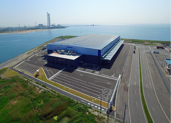 日本トランスシティと伊勢湾倉庫は5月25日、昨年4月から着工した霞北埠頭流通センターが竣工する。