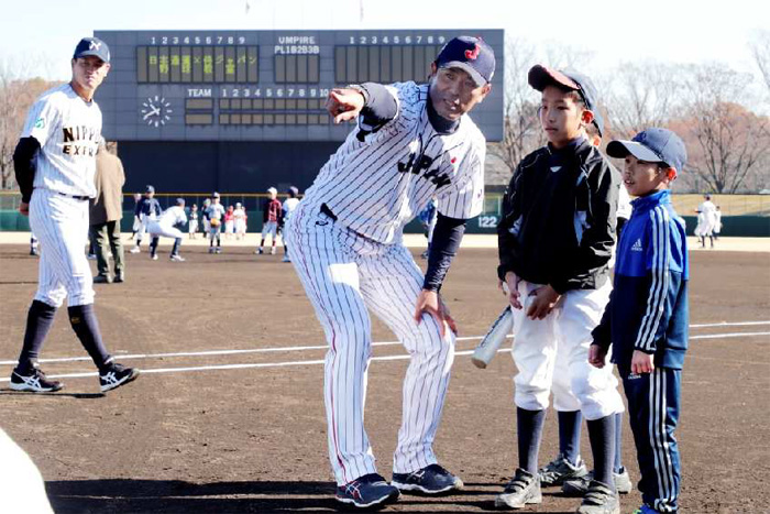 スペシャルコーチに侍ジャパンの稲葉篤紀監督と建山義紀コーチを迎え、日通野球部メンバーと共に、埼玉県内の小学5・6年生と社員子息102名に技術指導を行った。