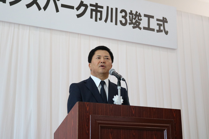 プロロジスの山田御酒社長は「プロロジスパーク市川3の竣工で千葉県内では19棟目の物流施設となる。竣工前に3社と100%リーシングが決まった物件も珍しく、開発立地の良さが証明されたものと思っている」と述べた。