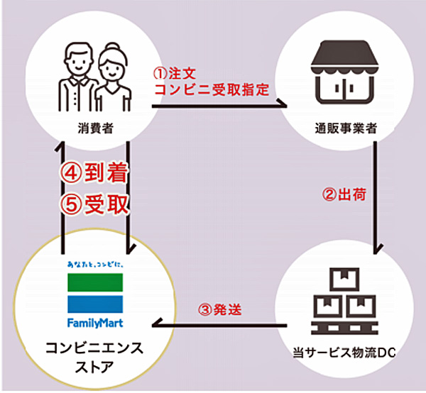 さらに、消費者は、いつでもコンビニで商品を受け取れるだけでなく、同時に代金の支払いも可能となる。多様化する受取ニーズに対応した利便性の高いサービス。