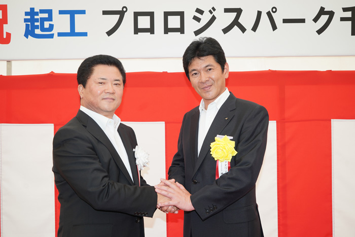 プロロジスの山田御酒社長は「千葉県では14棟目、千葉市では初となる。物流施設は何といっても立地が一番。この土地は入札で購入したが、これには金額だけでなく提案という要素もあり、この提案内容が高く評価され落札できた。満床となると約1000人が働く場所となるため、レストランやカフェテリアも設置予定だ。従業員の働く環境を考慮し快適な環境を提供するのは当たり前。さらに、AIやロボット化についても研究を進め、「プロロジスパーク千葉1」が竣工する時には世界でも最先端の物流施設になると思う」と述べた。
