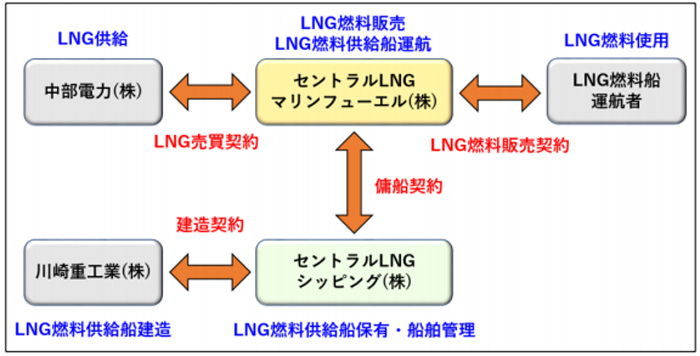 4社は、中部地区での船舶向けLNG燃料供給の事業開始に向けて、今年5月にCLSとセントラルLNGマリンフューエル(CLMF)を設立した。