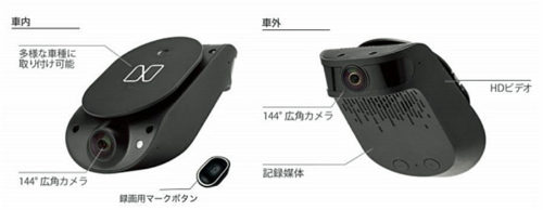 車内・車外カメラ:画素数:480px、画角:水平 144°、垂直 72°