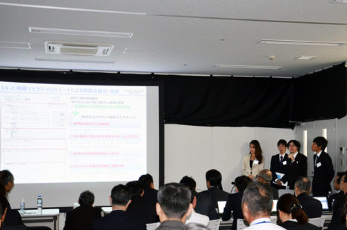 「LOGISCO One Team」のスローガンのもと「センター横断で改善に取り組む」 「全社的な標準化と標準化のさらなる向上」をテーマに、全国の物流センター等から選抜された15チームが改善活動の成果を報告、各チームと参加者の間で活発な意見交換が行われた。