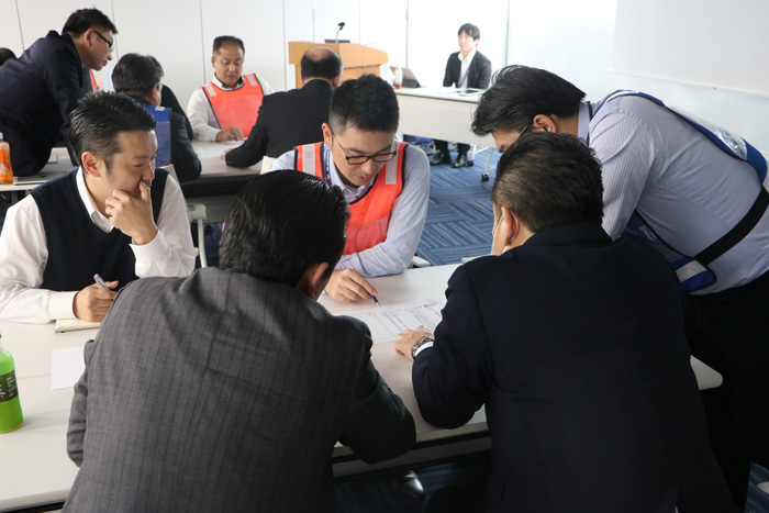 訓練には、SGフィルダーの役員、シニアマネジャー、支店長、支店 BCP責任者ら計39名が参加。実践度の高いシナリオ非公開型のシミュレーション訓練として、「大型台風接近の予報」から「台風上陸・河川の氾濫」、「従業員の安否確認」、「BCP 発動」、「台風通過後の事業再開」までの時系列に沿って課題を出題し、全国7拠点の支店長や支店BCP責任者が、限られた情報・リソースの中で支店毎の役割の再認識、迅速かつ適切に行動計画書に基づく対応ができるかを検証した。