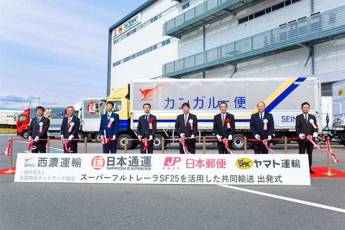 日本通運、ヤマト運輸、西濃運輸、日本郵便の4社は3月28日、関東~関西間での幹線輸送での、スーパーフルトレーラSF25(SF25)を活用した共同輸送を開始したと発表した。