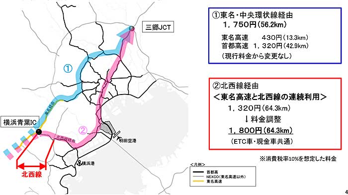 国土交通省道路局は8月30日、横浜環状北西線が2020年春に開通することを受けて、開通後の首都高利用料金の方針(案)を公表した。
