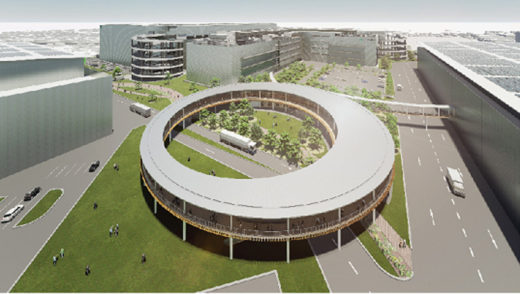 また、リングと各物流倉庫棟をペデストリアンデッキでつなぐことにより、歩車分離による安全な構内移動を確保するとともに、人々の交流やビジネス創出を促進。緑地エリアなど施設を地域住民に開放するほか、災害時の避難先、災害物資の配送拠点としての活用を計画するなど、地域と共生する施設を目指す方針だ。