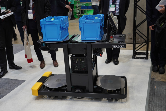 「寺岡精工」では自律走行式ピッキングカートを展示・デモ。最適ルートを無人で走行し、商品棚の前まで移動するというもので作業者は担当エリアを動かずピッキングできる。「オカムラ」では「オートストア」の展示とともに、開発中の自動搬送ロボット「ORV」(自律移動ロボットカゴ車搬送タイプ」を展示。同タイプのモデルは各社でも展開しているだけに、AGV導入があらゆる場面で現実的になってきたようだ。