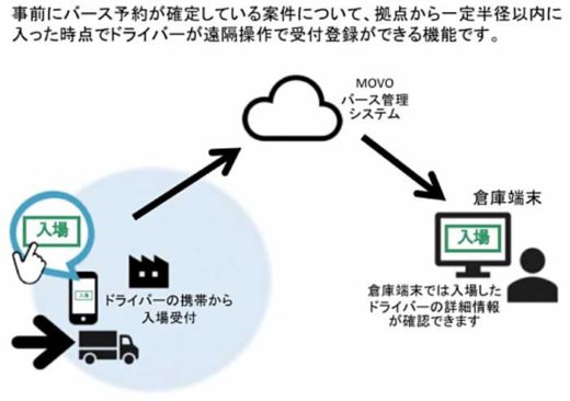 この機能によって、ドライバーが物流施設の近くにいる確実性を担保しながら、受付窓口への移動の手間を減らすことができるようになるため、トラックの待機問題解決や構内の安全確保への寄与が期待できる。