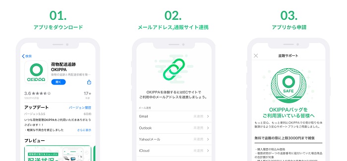 盗難サポートは、「OKIPPAアプリ」で配送状況が追跡できている荷物が対象となる。補償を受けるには盗難届の写しと盗難現場の画像が必要で、申し込み申請が承認されると商品代金分(上限3000円)のギフトカード等がYperから送られる仕組み。