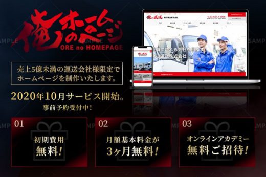 船井総研ロジは8月17日、運送業界に特化したホームページ制作・運用代行サービス「俺のホームページ」を10月に開始すると発表した。