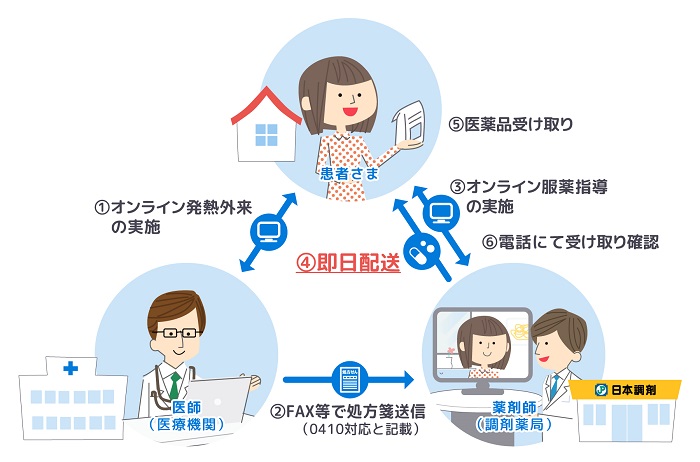 日本調剤では、新型コロナウイルスの感染拡大による患者への感染リスクの低減を目指し、オンライン服薬指導に対応する体制を整備してきた。即日配送が実現することで、急な発熱や体調不良の際にも自宅にいながら当日中に服薬を開始することが可能となる。