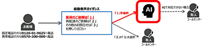 これは、ヤマトグループのコールセンターが、2020年11月より、有人オペレータに電話が繋がるまでの待ち時間を削減するため、法人の顧客を対象に「AIオペレータ」による集荷依頼の受付が可能なサービスを開始した。このサービスを利用した顧客から大変好評であったため、「AIオペレータ」の対応範囲を個人の顧客からの集荷依頼まで広げることで、顧客のさらなる満足度向上を目指すというもの。