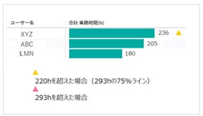 「ドライバーの拘束時間管理」では、2024年に導入される労働基準法の年間残業時間規制に対応し、ドライバーの月間拘束時間が上限の293時間に近づくと、管理者へ注意喚起を促す。