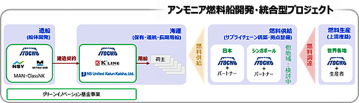 そして、川崎汽船、伊藤忠商事、NSユナイテッド海運が、アンモニア燃料船の実船実証を行う。