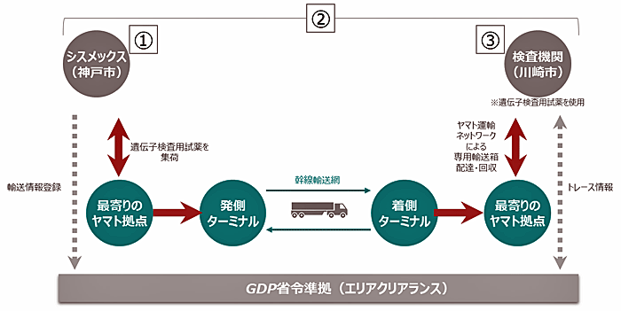 ヤマト運輸とシスメックスは12月23日、シスメックスの拠点(神戸市)から検査機関(川崎市)まで、体外診断用医薬品の業界では国内初となる遺伝子検査用試薬のマイナス70度超低温帯での混載輸送を12月からドライアイスフリーで開始したと発表した。