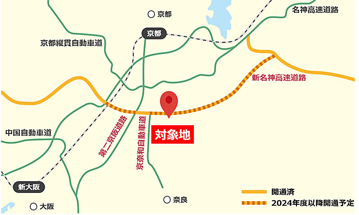 計画地は、京都府の「新名神を活かす『高次人流・物流』構想」の中で、次世代型物流拠点として位置付けられており、同計画を通じて、物流IoT等の最先端技術に対応した中核物流拠点として広域幹線物流システムの整備を担うことで、物流業界の人手不足や配送効率の高い物流ネットワークの構築に寄与する。