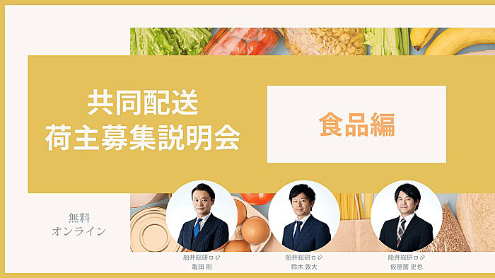 船井総研ロジは2月16日、「第2回 共同配送荷主募集説明会-食品編-」をオンラインで開催する。