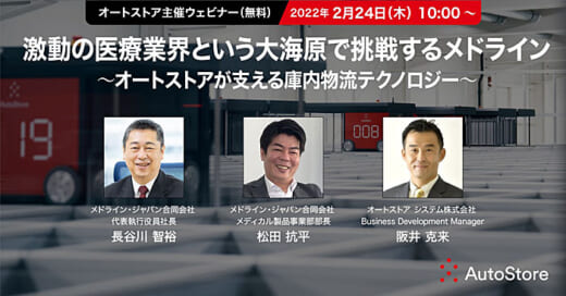 オートストアは2月24日、無料のウェビナー「激動の医療業界という大海原で挑戦するメドライン~オートストアが支える庫内物流テクノロジー~」をライブ配信する。