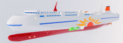 商船三井グループでは2023年に就航予定の日本初のLNG燃料フェリー2隻「さんふらわあ くれない」「さんふらわあ むらさき」を建造中だが、今回の2隻を追加することによって、業界の環境対応をリードしていくとしている。