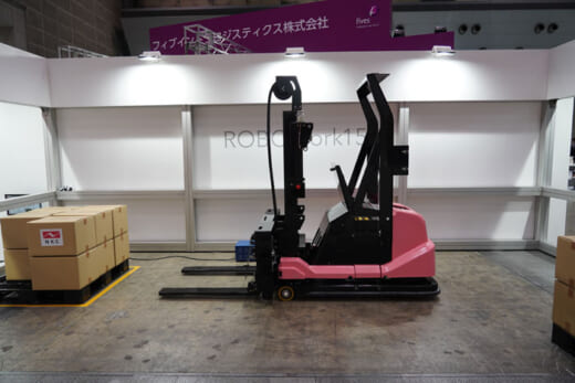 AMR関係では、IDECファクトリーソリューションズの展示が目立った。デンマーク製の自立走行型のAMRを4機種揃えて実演。また、NKCが無人走行フォークリフトを展示・実演。顧客の要望に基づき、すべて自社生産したという。
