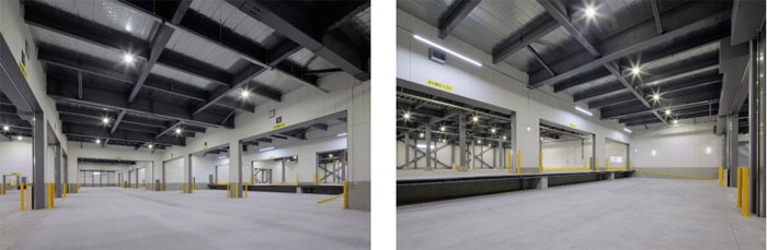 地上2階建て、延床面積2万3816.74m2(7204.56坪)の規模で、全フロア床荷重2.0t/m3、梁下有効天井高5.5m以上、柱間隔10m以上。また、倉庫1階には中央車路方式を採用しているため、天候に左右されることなく屋内で入出庫作業をすることが可能。ドックレベラーを2基完備したトラックバースでは、海上コンテナやロールボックスパレットなど多彩な貨物を取り扱うことができる。