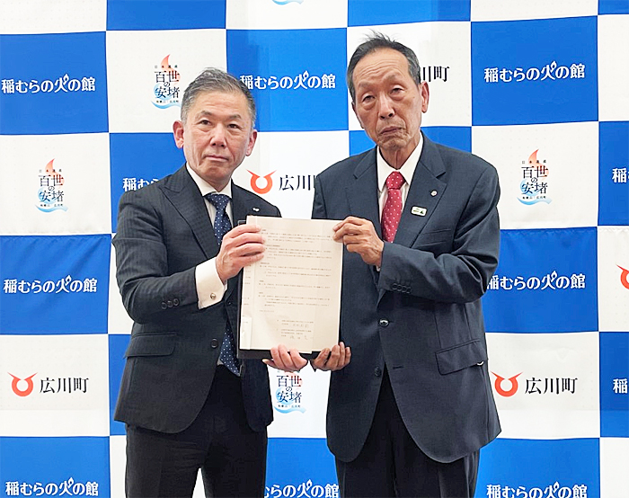 <(左から)京都支店の須田 充一支店長、広川町の西岡 利記町長>