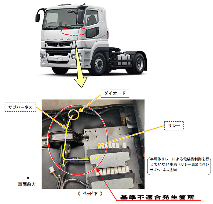 トレーラ側ブレーキランプの回路が不適切なため、ブレーキランプ点灯時に当該回路のダイオードが焼損する場合がある。そのため、トレーラ側ブレーキランプが不灯になってブレーキランプ異常の警告が表示され、最悪の場合、火災に至るおそれがある。