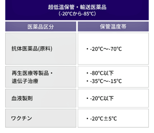 同サービスにより、医薬品の研究開発段階や製剤工程等の超低温保管・輸送が可能となり、医薬品関連の原料、中間体、原薬、完成品など幅広い領域の温度管理に対応するロジスティクスサービスを提供できる。