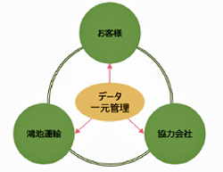 デジタルフォワーディングプラットフォームは、顧客、協力会社、自社の3者を繋ぎ、それぞれのポータルが構築されている。