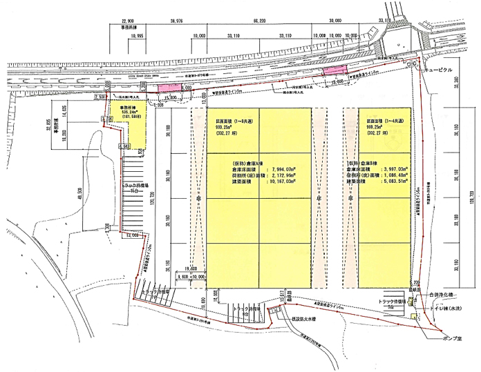 低床平屋建て、天井高6.7mの倉庫2棟で構成する合計建物面積1万2000m2の施設で、2023年3月の竣工を予定している。