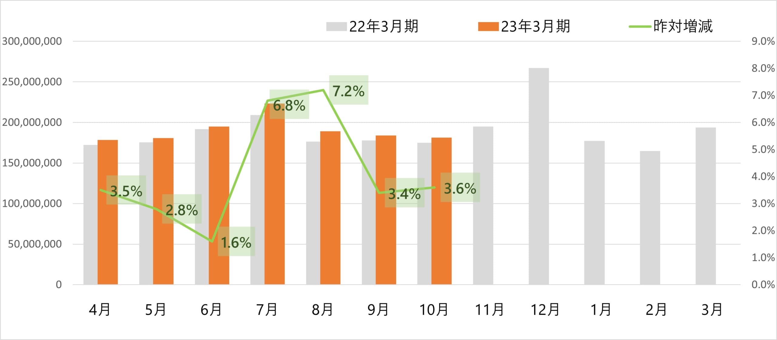 | 前年同月比 | 3.6%増 | 2.6%増 | 8.2%増 | 2.4%減 |