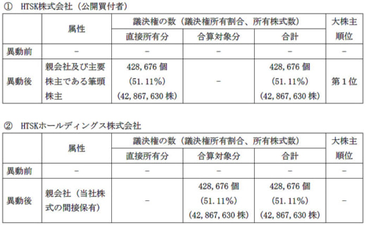 <HTSKとHTSKホールディングスの議決権の数、議決権所有割合及び所有株式数>