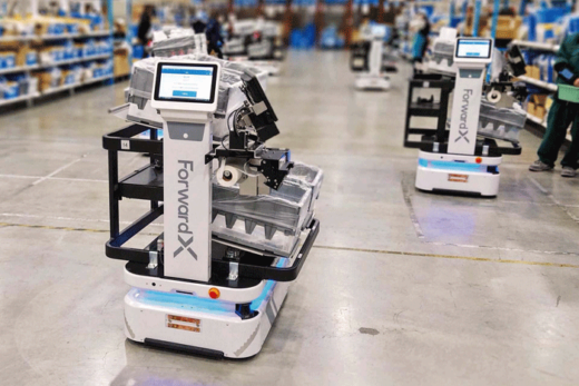 今回、新出荷ラインで導入した重量計つきAMRは、パートナーである物流企業の流通サービスと、マテリアルハンドリング企業の椿本マシナリーが、高い技術力とソリューション提案に優れた製造元のフォワードエックス(日本本社:東京都中央区)と協働し、新たに開発したもの。組み込んだ重量計は、重量計付きカートピッキングで実績のある寺岡精工製のものを採用した。