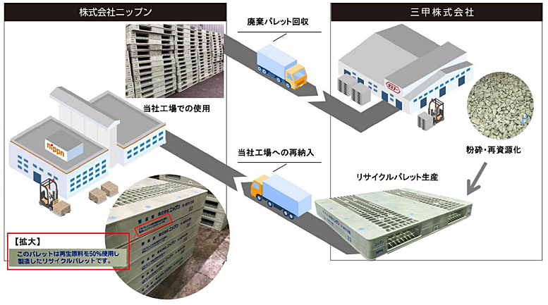 ニップンは2月24日、三甲と協業し、プラスチックパレットを資源循環する取り組みを開始したと発表した。
