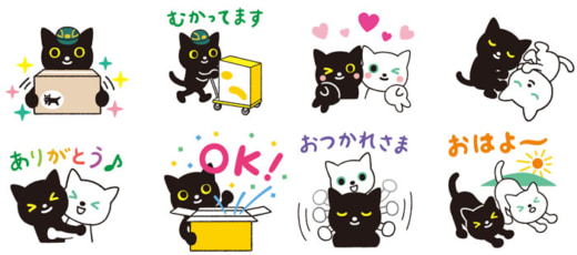 ヤマトグループのキャラクターである「クロネコ・シロネコ」をモチーフにした LINE スタンプ。キャラクターデザインを手掛ける坂崎千春氏協力のもと、日常で使いやすい8種類のデザインを用意した。