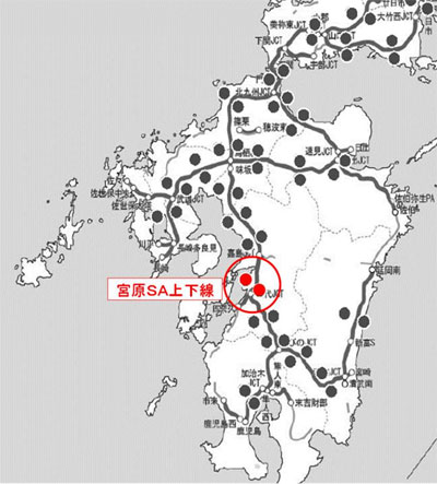 九州自動車道:宮原 SA 上り線 4口、宮原 SA 下り線 4口