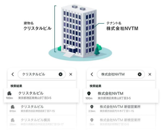 強化したのは、全国約3800万件の「建物名検索」に対応し、ビル内の「テナント名検索」も可能にした。建物の入口位置を、地図上に表示し、そこまでのルート案内も可能に。Apple の「Look Around」に対応し、地点の実際の風景をアプリ上で確認可能にした。