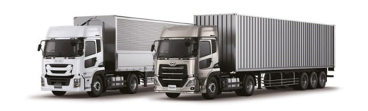 <左から新型トラクタヘッドいすゞ「ギガ」、UDトラックス「クオン」>