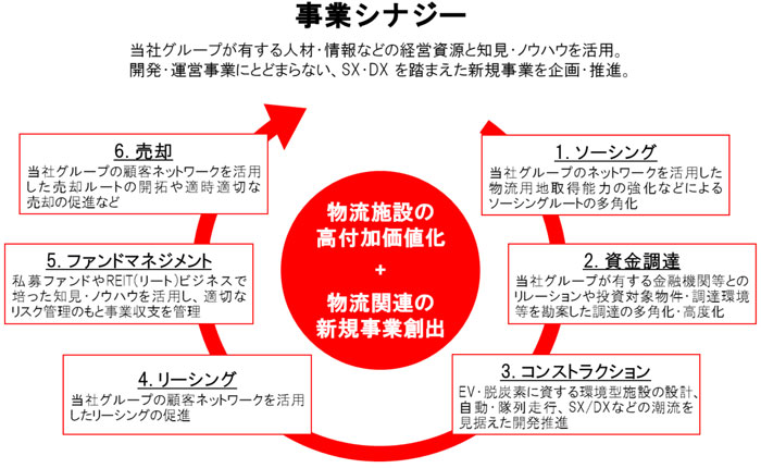 同社は、今後とも物流施設へのニーズに応えるため、同社グループが有する人材や情報などの経営資源、さまざまな産業でのパートナーとの連携、同社とCPDの知見およびノウハウを活用した物流施設の開発を推進する。これにより、今後3年間で、新たに総事業費約1200億円規模の物流施設の開発を見込んでいまる。同社は、開発事業の継続的な拡大、さらには、自社開発物件を中心に組み込んだコアファンドの組成により、将来的には総運用資産額5000億円をめざす、としている。