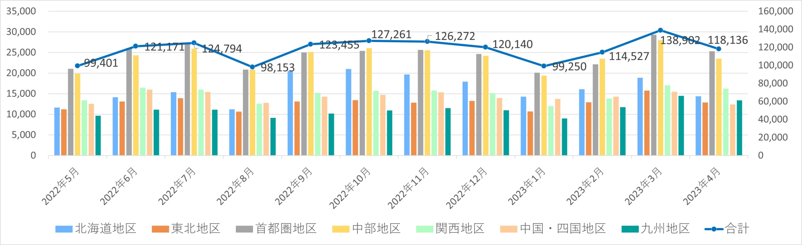 | 北海道地区 | 東北地区 | 首都圏地区 | 中部地区 | 関西地区 | 中国・四国地区 | 九州地区 | 合計 | |