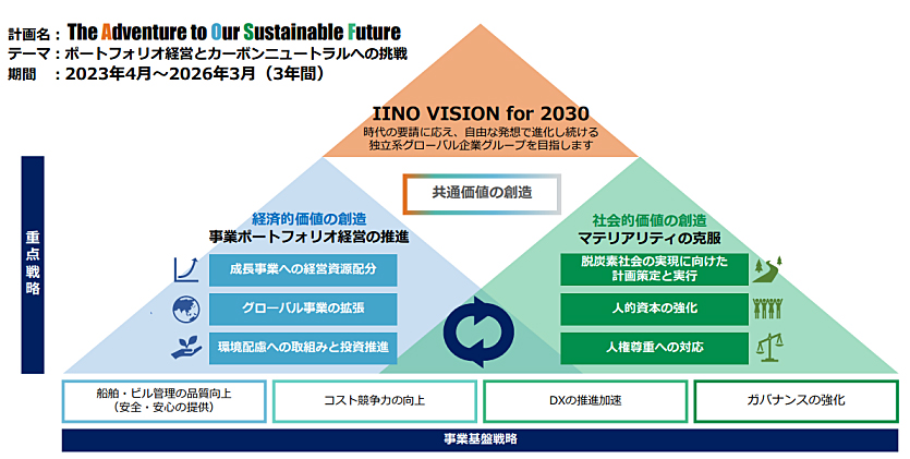 飯野海運は、2023年4月から開始した3年間のグループ中期経営計画で、「経済的価値と社会的価値の創造」を目標に掲げており、今回、2社と連携し先進的な技術を発掘・活用することで、業務の効率化を図り、2050年カーボンニュートラル達成やエネルギー変革に代表される海事産業に課せられた課題の克服を通じて、経済的価値と社会的価値の創造の実現を目指す。